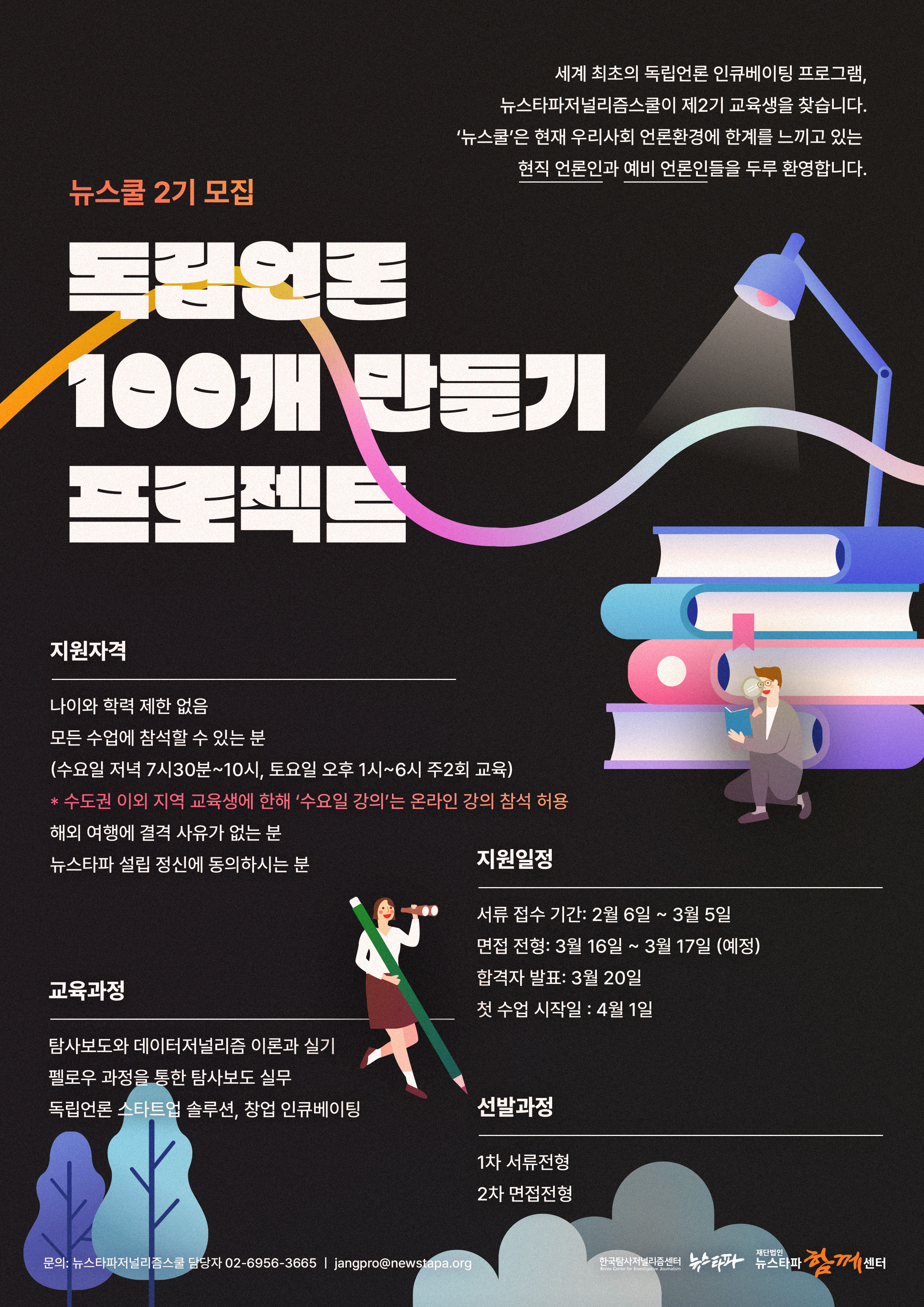- 뉴스타파저널리즘스쿨 담당자 02-6956-3665 / jangpro@newstapa.org