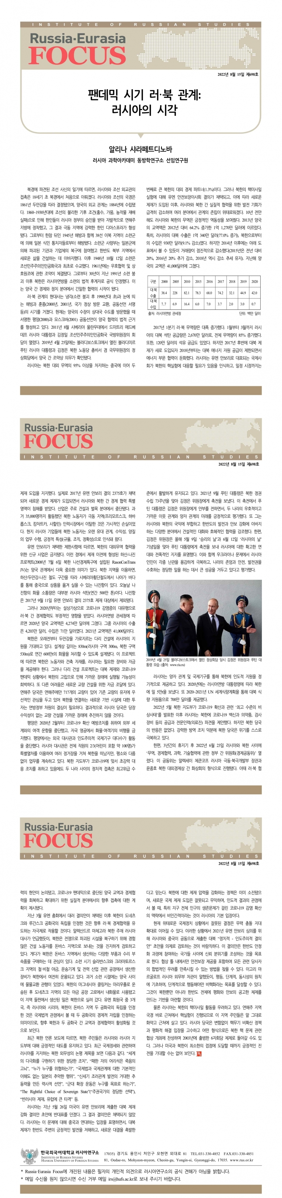 제698호 팬데믹 시기 러·북 관계: 러시아의 시각