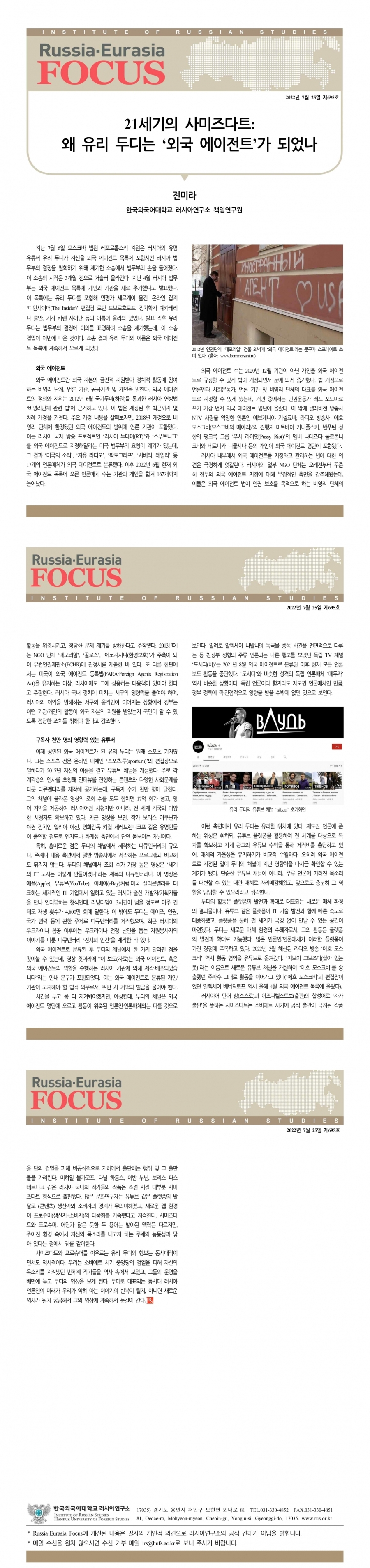 전미라 / 21세기의 사미즈다트: 왜 유리 두디는 '외국 에이전트'가 되었나