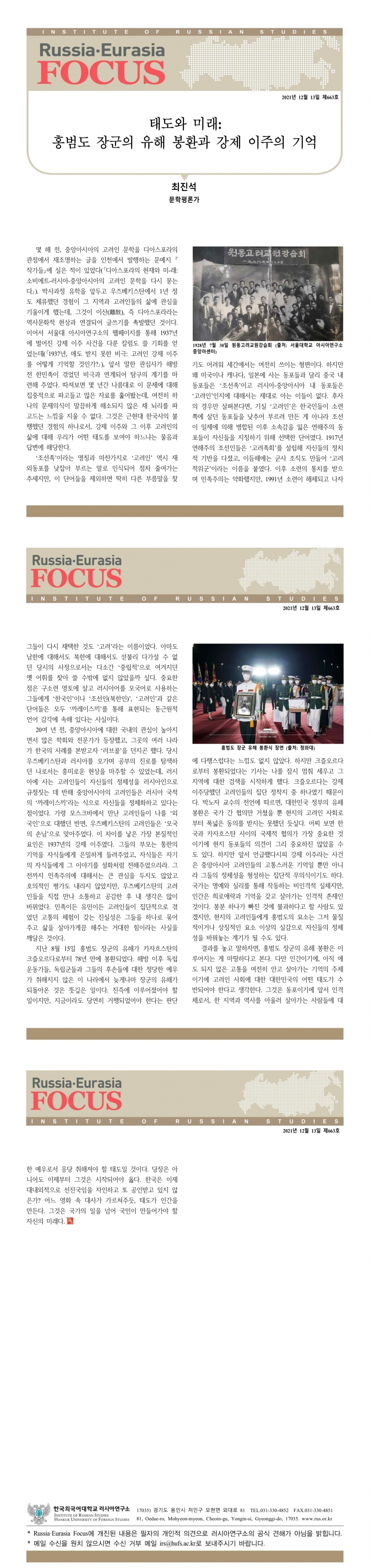 제663호 태도와 미래: 홍범도 장군의 유해 봉환과 강제 이주의 기억