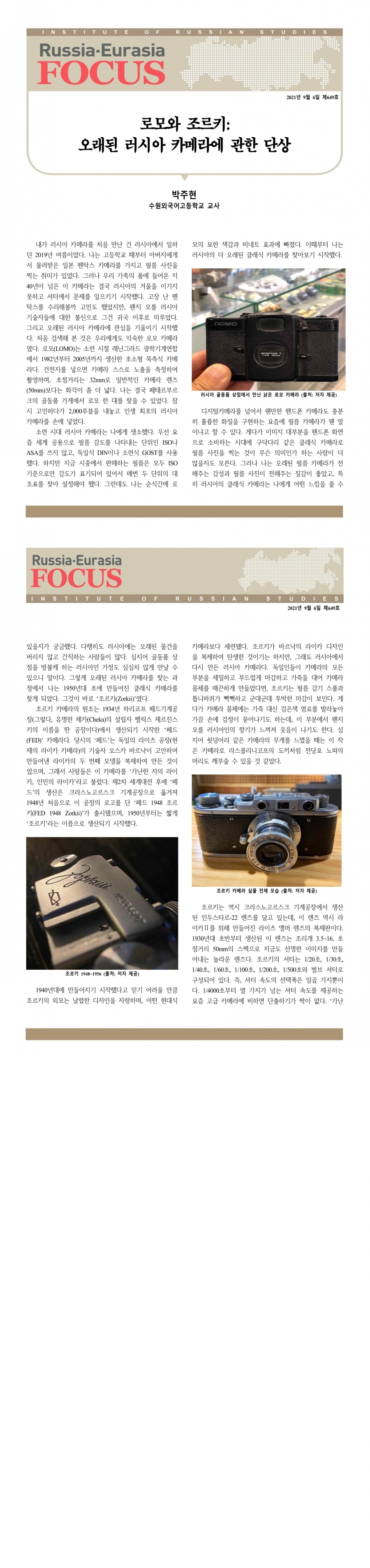 제649호 로모와 조르키: 오래된 러시아 카메라에 관한 단상