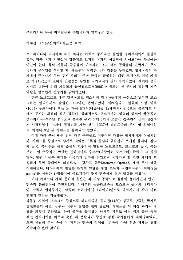 제67차 우크라이나 동‧서 지역갈등과 주변국가의 역학구조 연구 외 1