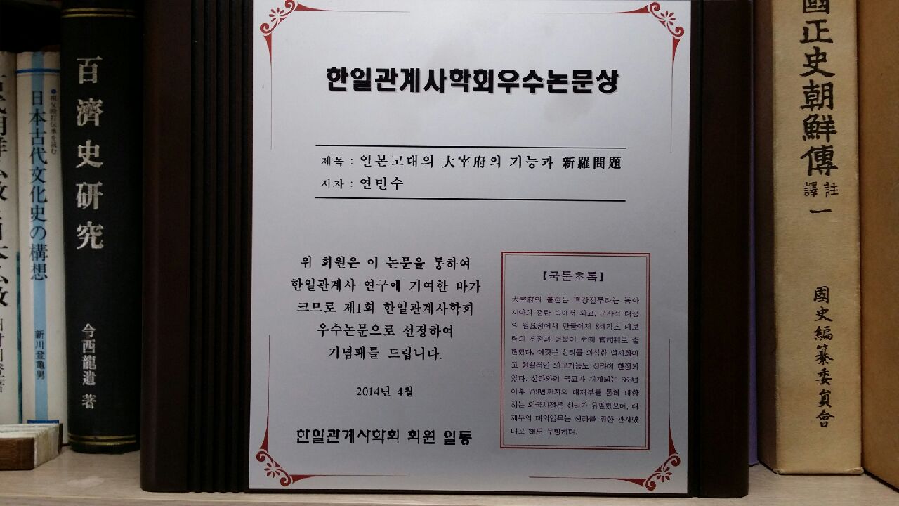논문상은 연민수 선생님, 일본 고대의 大宰府의 기능과 新羅問題(한일관계사연구 45, 2013.8)이었습니다.