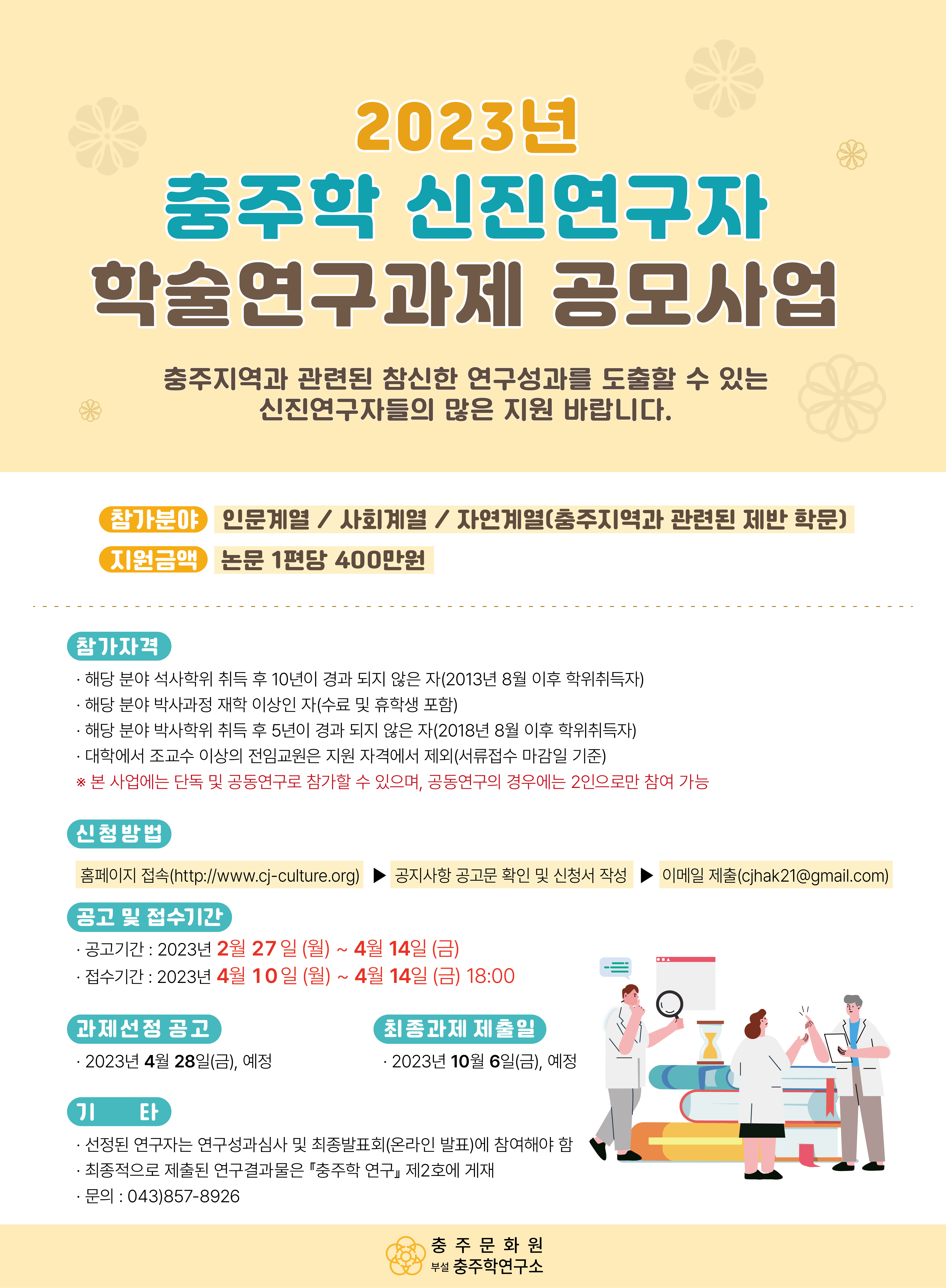 - 사업명 : 2023년 충주학 신진연구자 학술연구과제 공모사업