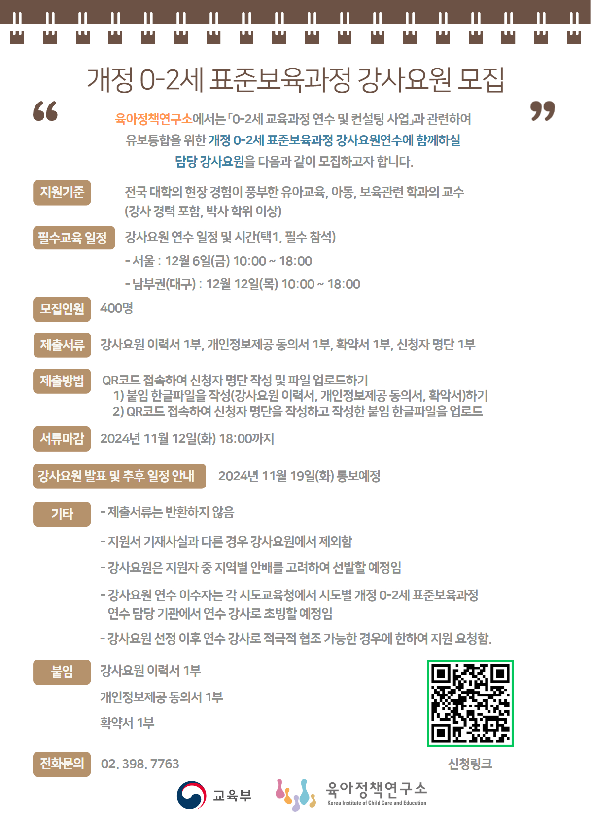 [홍보] 육아정책연구소 강사요원 및 컨설턴트 모집 안내