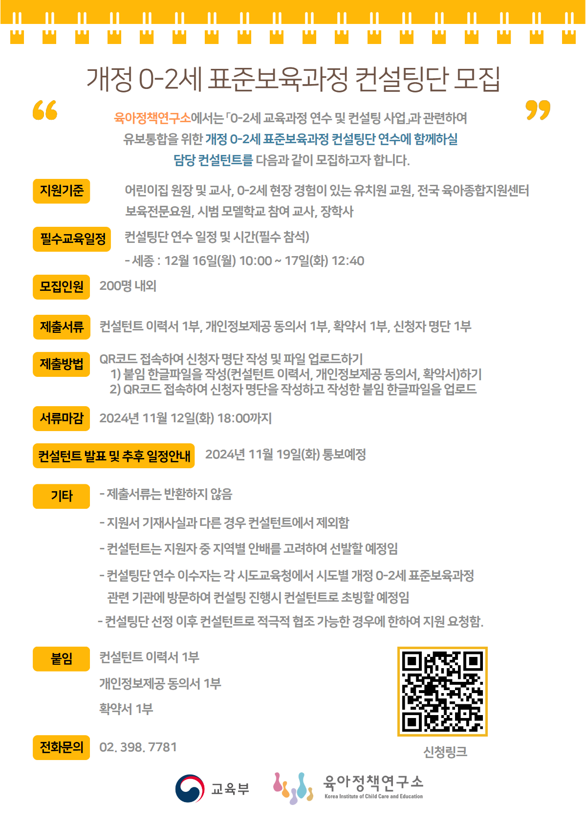 육아정책연구소에서는 <0-2세 교육과정 연수 및 컨설팅 사업>과 관련하여