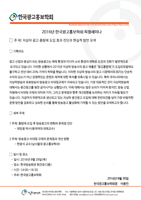 [KADPR]2016년 한국광고홍보학회 특별세미나