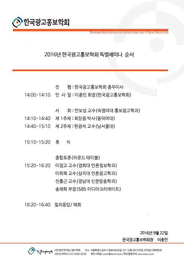 [KADPR] 2016년 한국광고홍보학회 특별세미나 공지