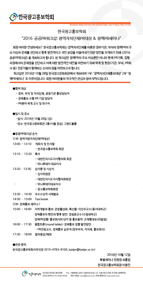 [KADPR] 2016 공공PR워크샵: 광역자치단체PR대상 & 정책PR세미나