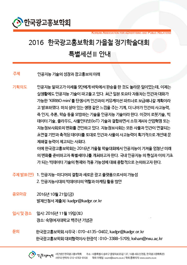 [KADPR] 2016한국광고홍보학회 가을철학술대회 특별세션Ⅲ 안내