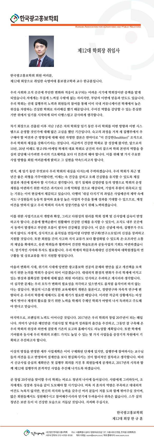 [KADPR] 한국광고홍보학회 제12대 학회장 취임사