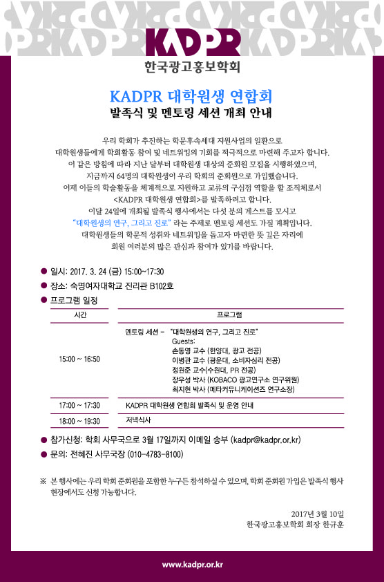 KADPR 대학원생 연합회 발족식 및 멘토링 세션 개최 안내