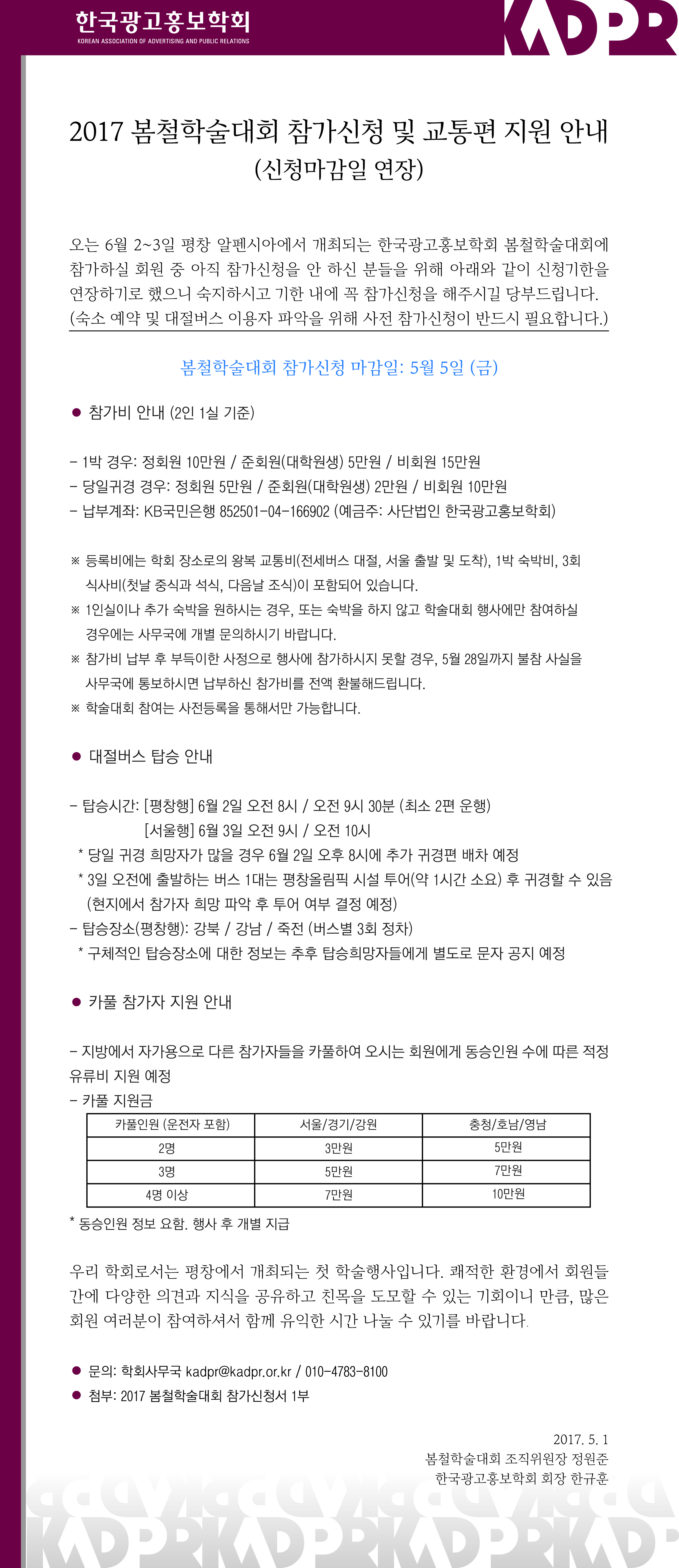 [KADPR] 2017 봄철학술대회 참가 신청 및 교통편 지원 안내