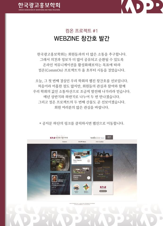 [KADPR] 한국광고홍보학회 Webzine 창간호 발간 안내