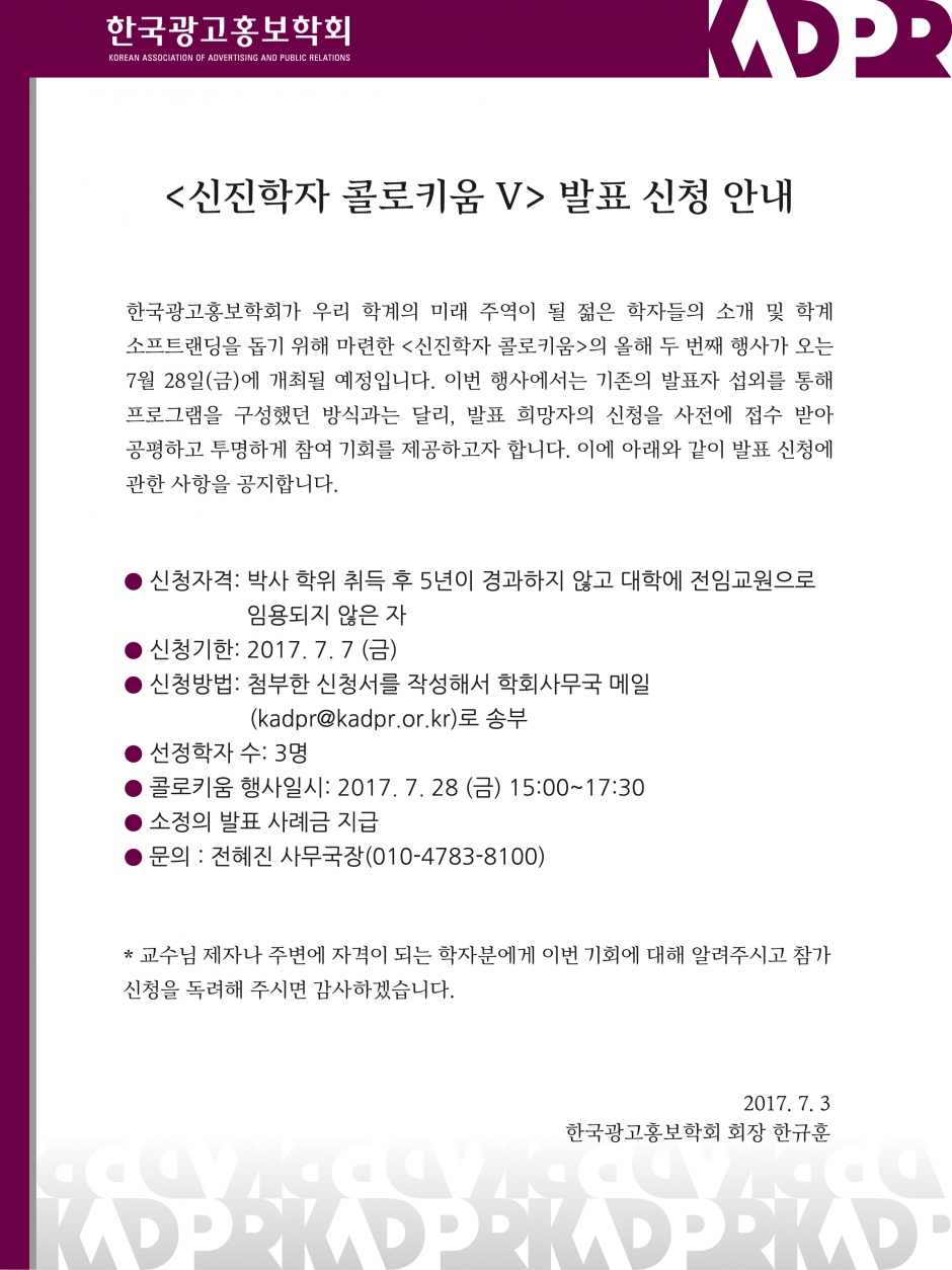 [KADPR] 광고PR 5개 학회 연합 <2017 ADPR 펜타 포럼> 개최 안내