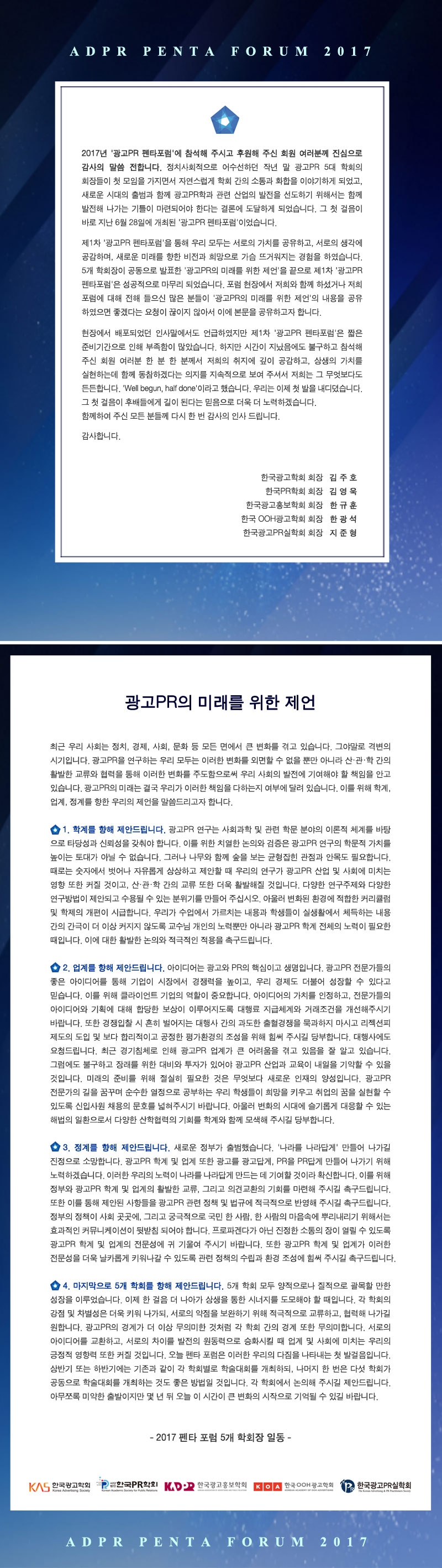 [KADPR] 광고PR 펜타포럼 <광고PR의 미래를 위한 제언>