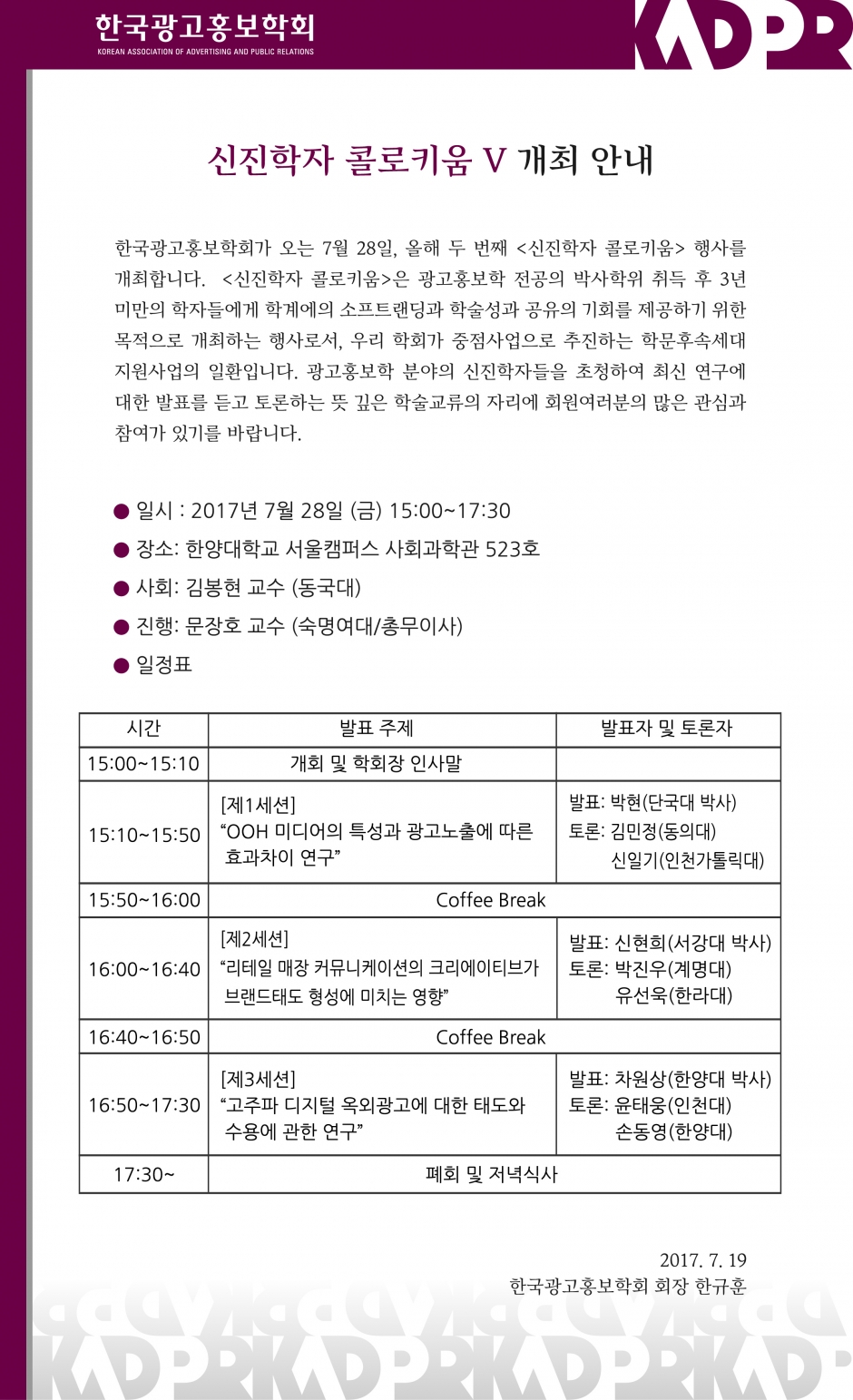 [KADPR] 신진학자 콜로키움 V 개최 안내
