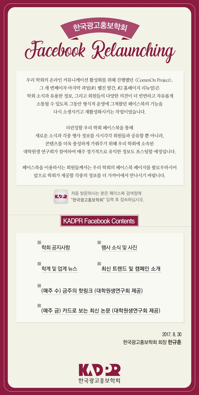 [KADPR] 학회 페이스북 페이지 리런칭 안내