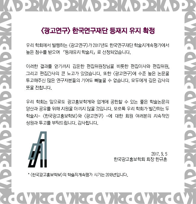 [KADPR] <광고연구> 한국연구재단 등재지 유지 확정