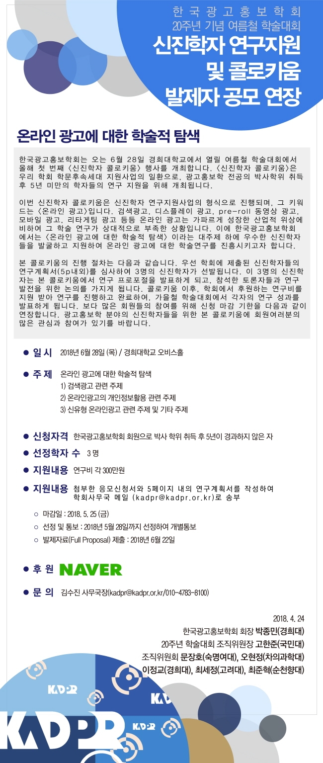 [KADPR] 20주년 기념 여름철 학술대회 신진학자 연구지원 및 콜로키움 발제자 공모 연장 안내