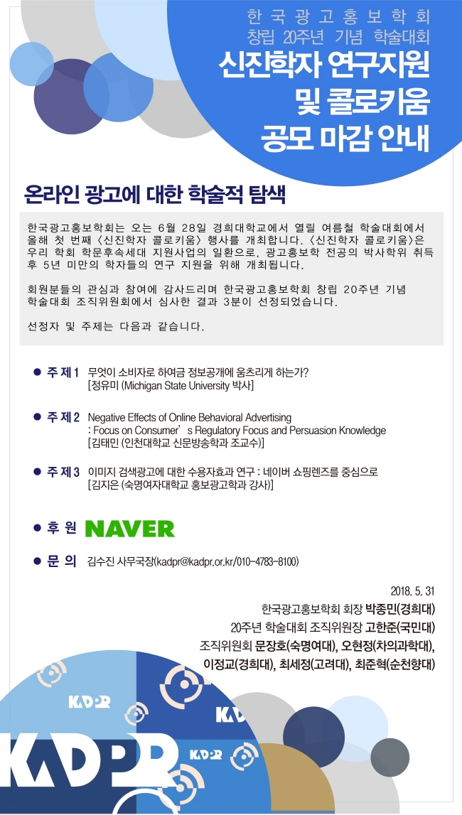 [KADPR] 창립 20주년 기념 학술대회 KPR 후원세션 안내