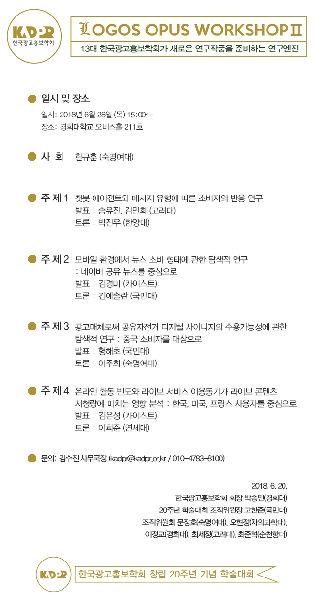 [KADPR] 창립 20주년 기념 학술대회 LOGOS OPUS WORKSHOPⅡ 세션 안내