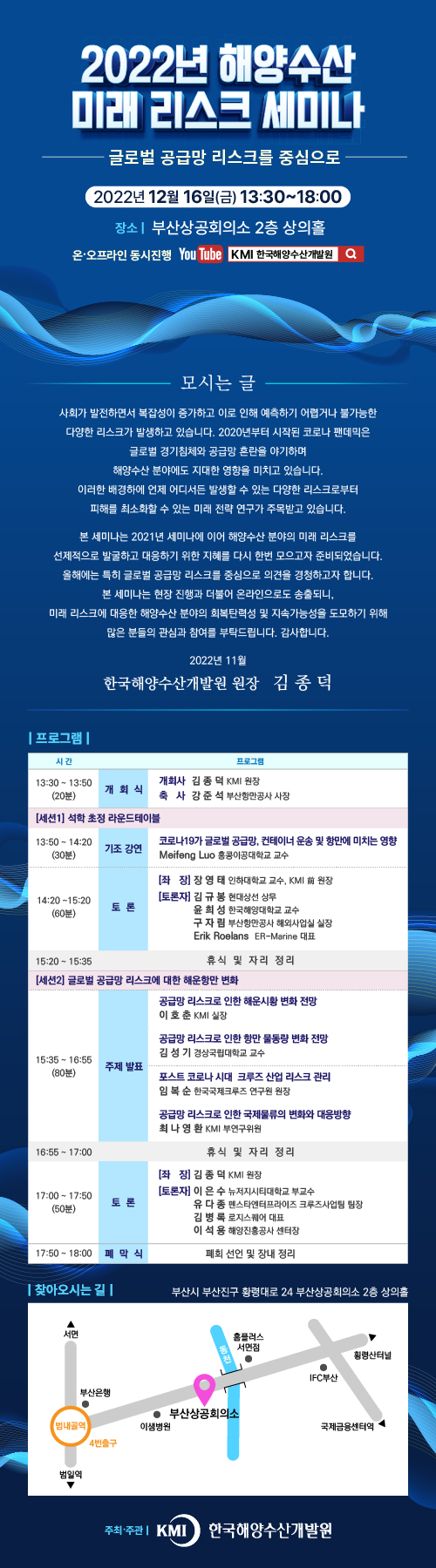 [외부] KMI 2022 해양수산 미래 리스크 세미나 온라인 및 현장참석 안내