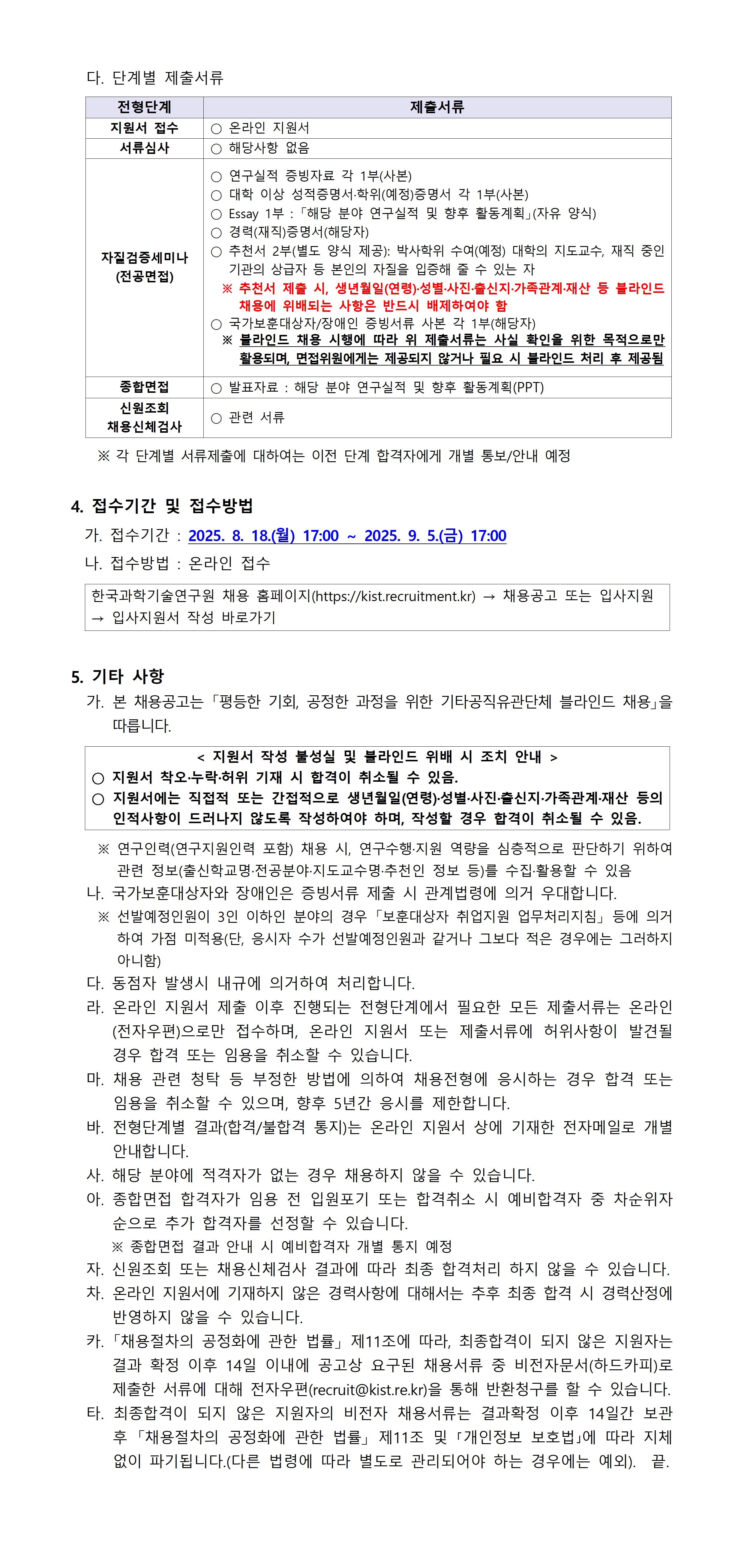 ○ 지원방법 : KIST 채용 사이트(https://kist.recruitment.kr)