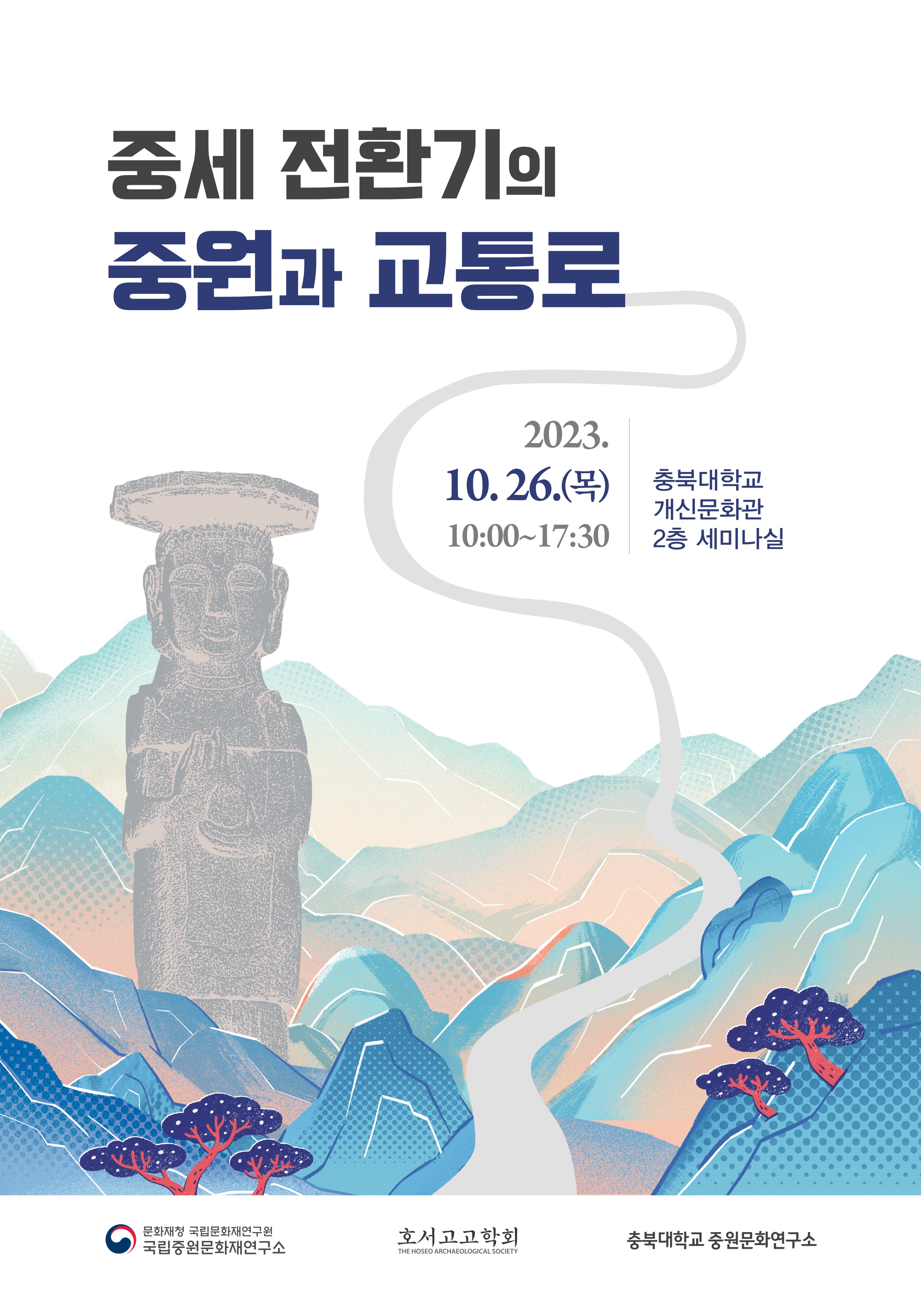 저희 학회에서는 국립중원문화재연구소, 충북대학교 중원문화연구소와 함께 2023년 10월 26일 "중세 전환기의 중원과 교통로"를 주제로 학술대회를 개최합니다.