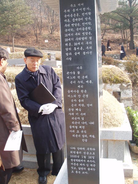 눈뫼 허 웅 선생 무덤에 세운 묘비의 오른쪽