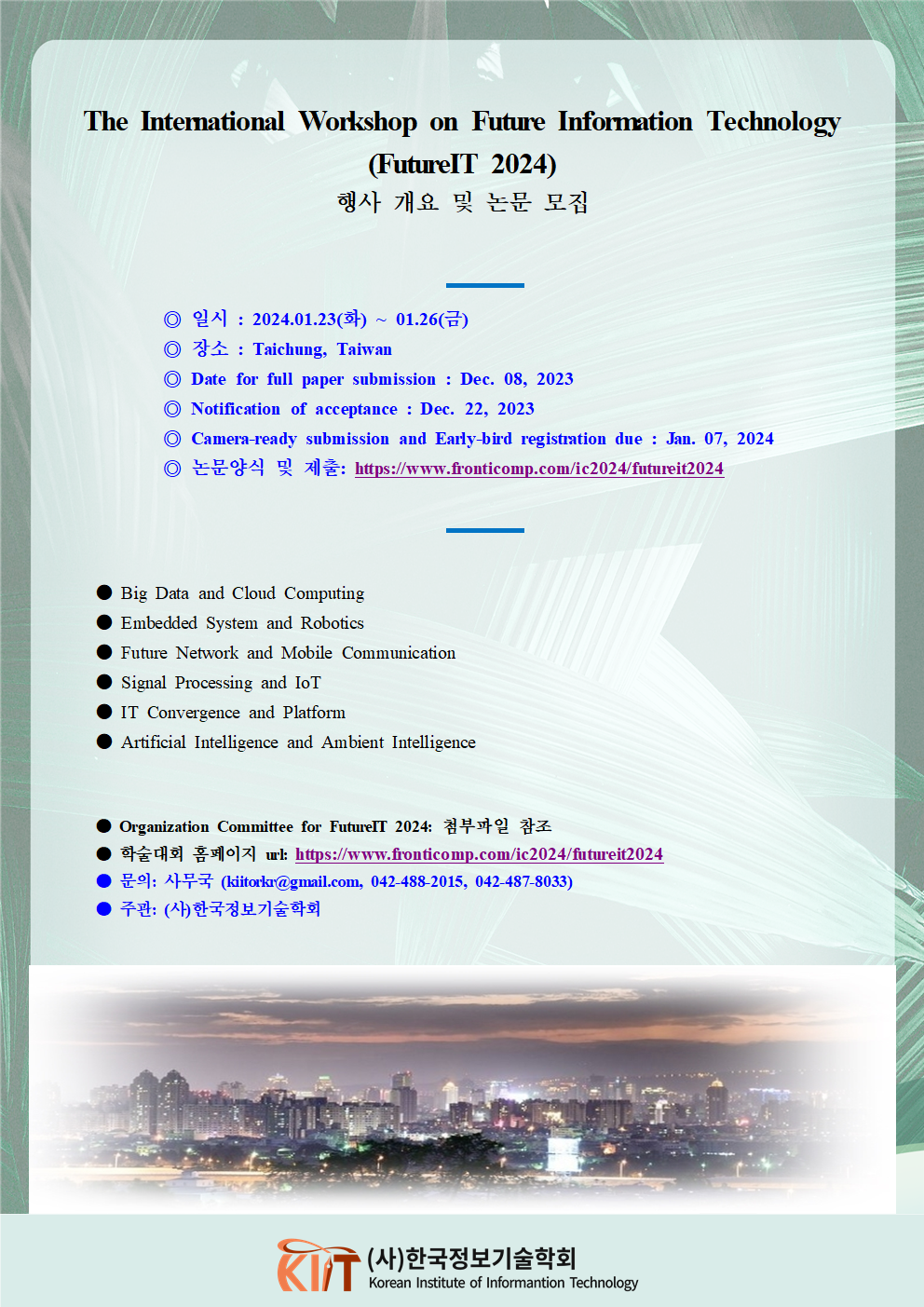 [논문투고 마감일 연장] 2023년 한국정보기술학회 추계종합학술대회 및 대학생논문경진대회_11월 5일(일)까지