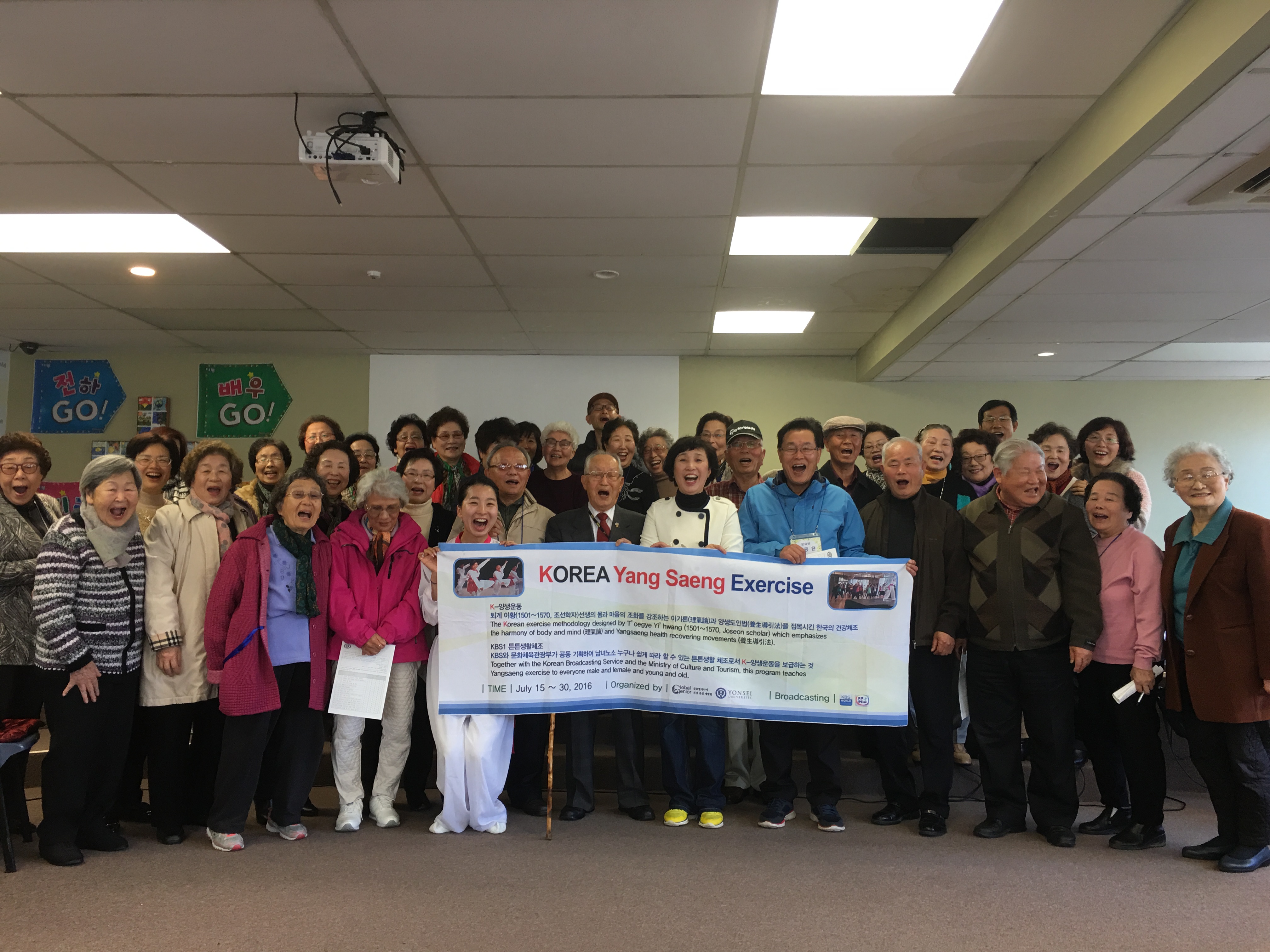 한인 교회 어르신들과 K-양생체조 수업 후 기념사진