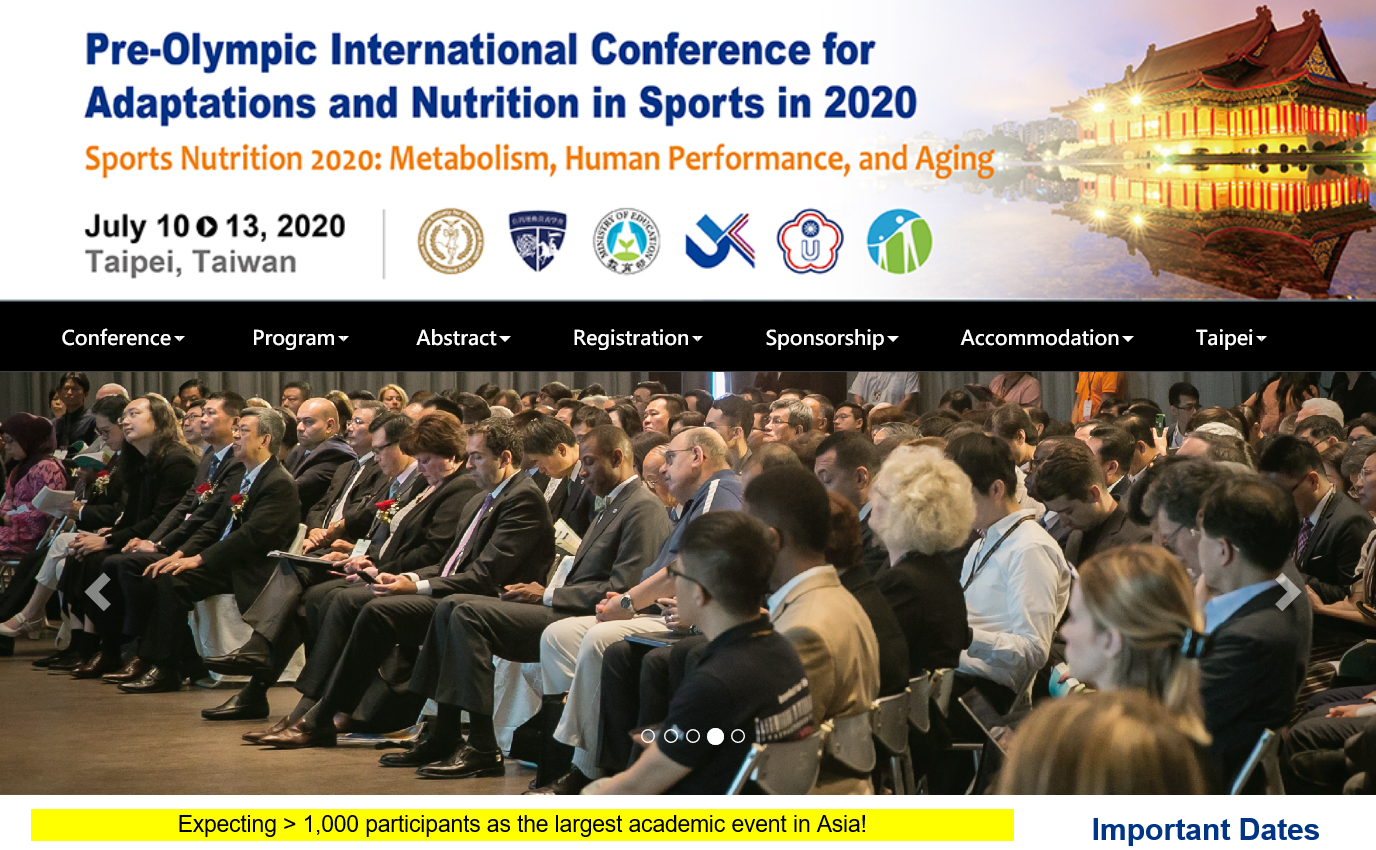 Pre-Olympic International Conference for Adaptaions and Nutrition in Sports in 2020 이 개최될 예정입니다.