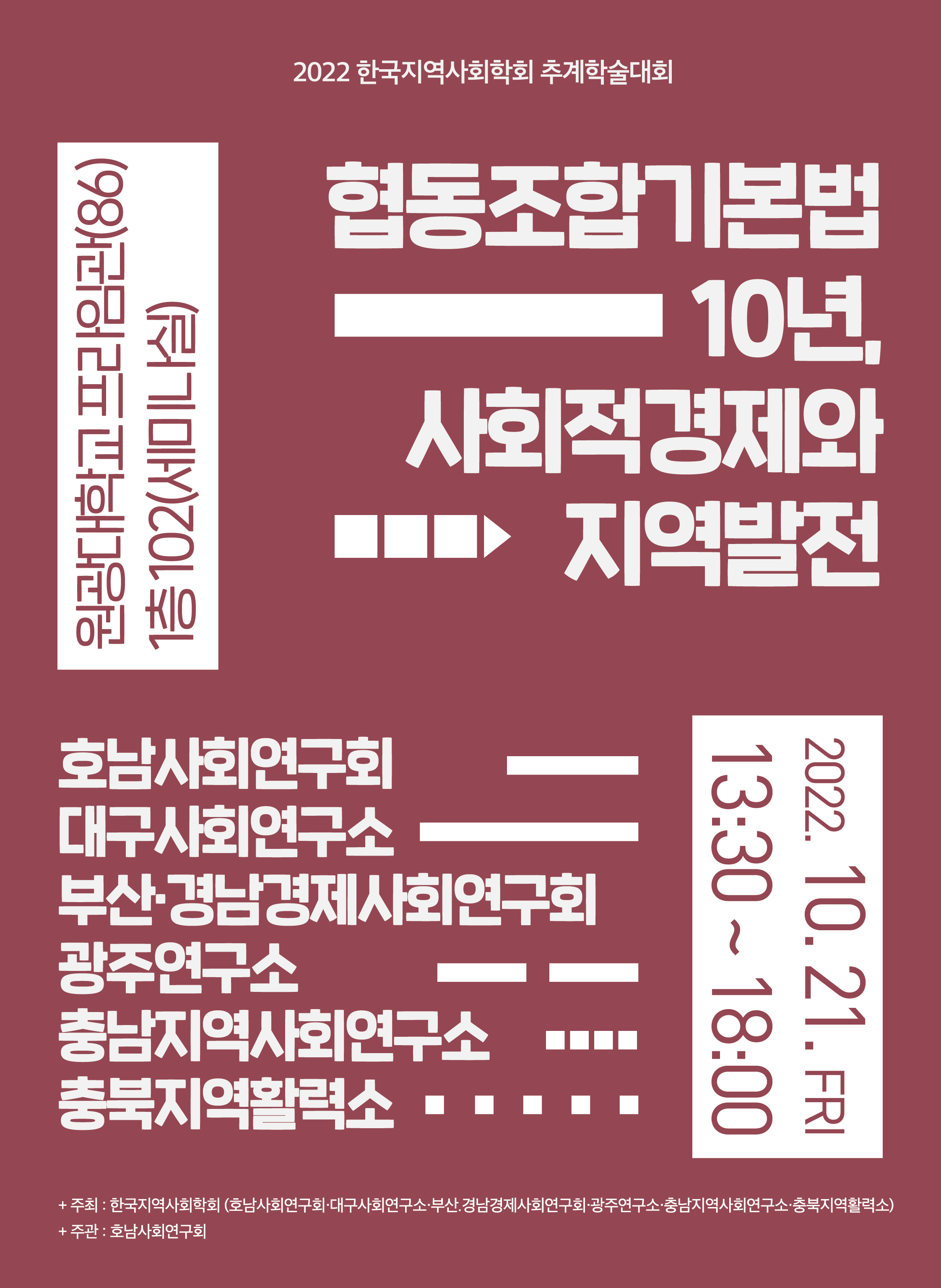 [2022 한국지역사회학회 추계학술대회] 협동조합기본법 10년, 사회적경제와 지역발전