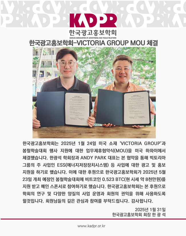 [KADPR] 한국광고홍보학회-VICTORIA GROUP MOU 체결 안내