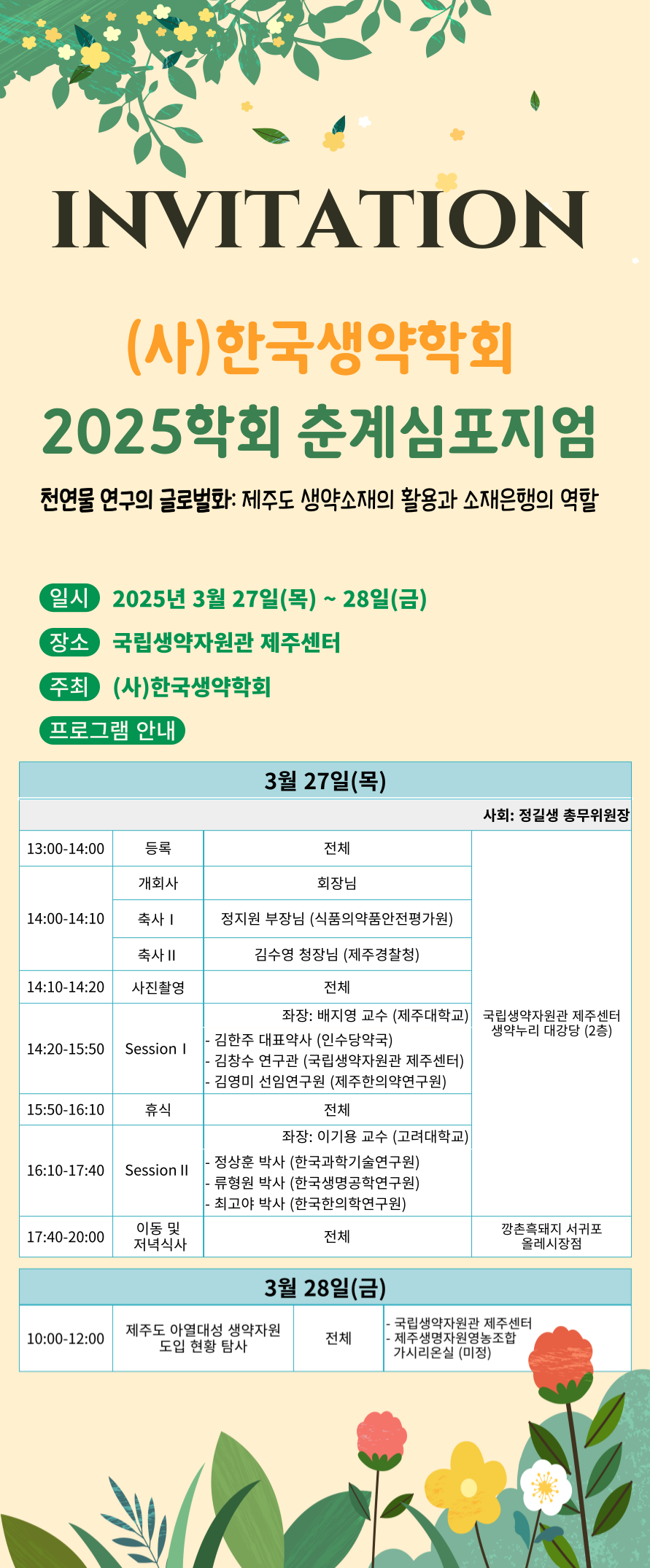 (사)한국생약학회 춘계심포지엄이 아래와 같이 개최됩니다.