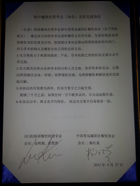 2013년 중국 MOU 협약서