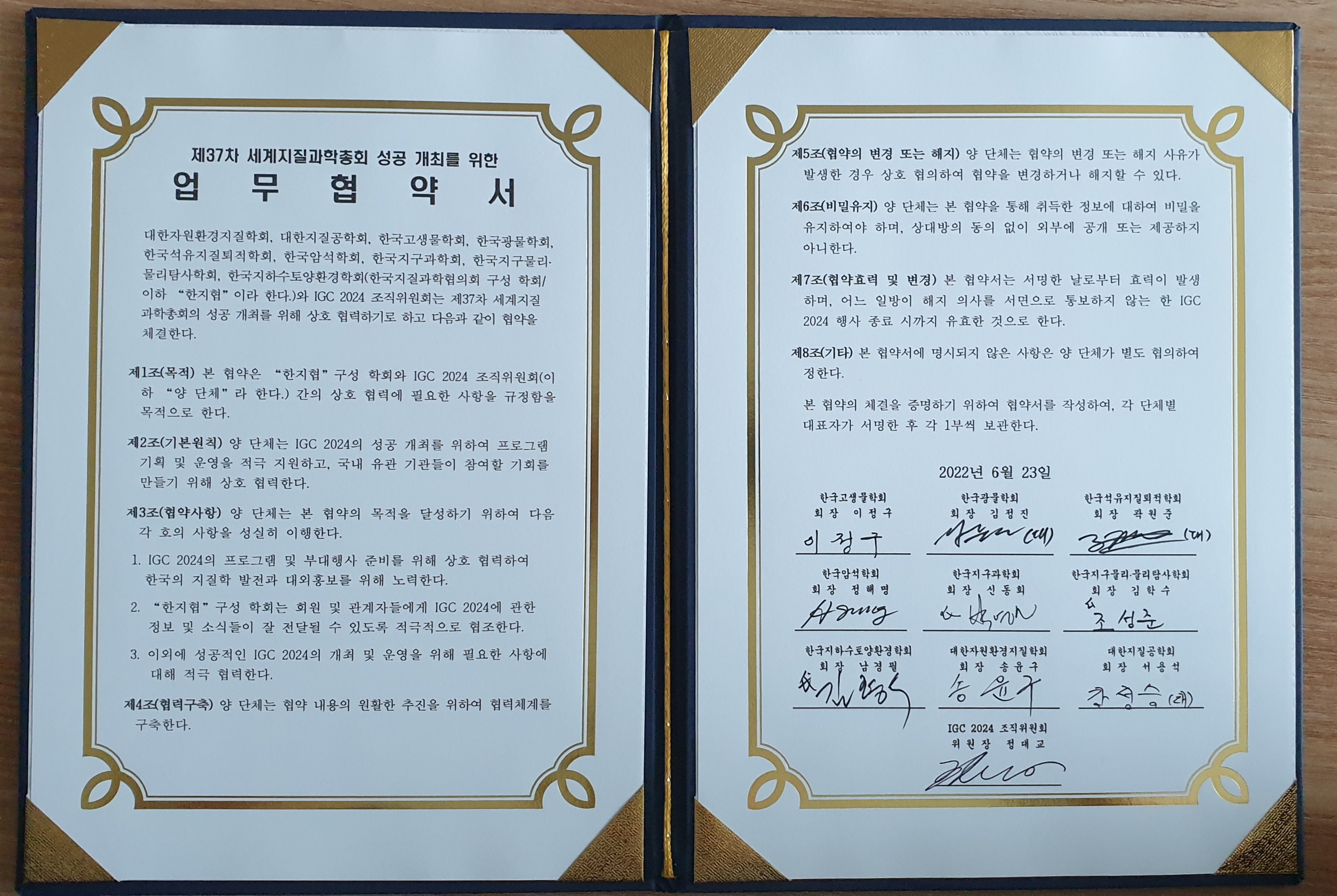 IGC 2024 세계지질과학총회 성공 개최를 위한 업무협약 체결