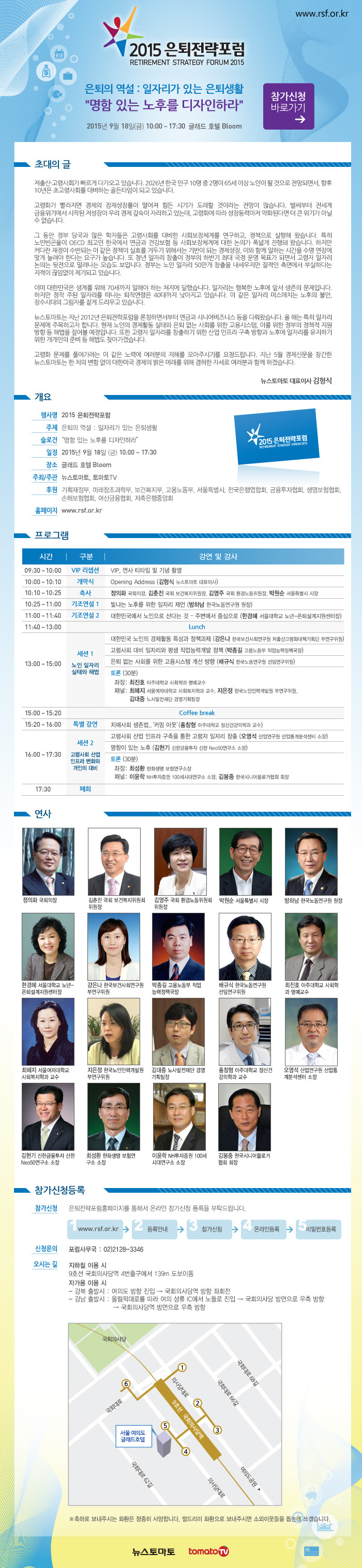 [기타] 2015은퇴전략포럼''은퇴의 역설:일자리가 있는 은퇴생활''(9/18)