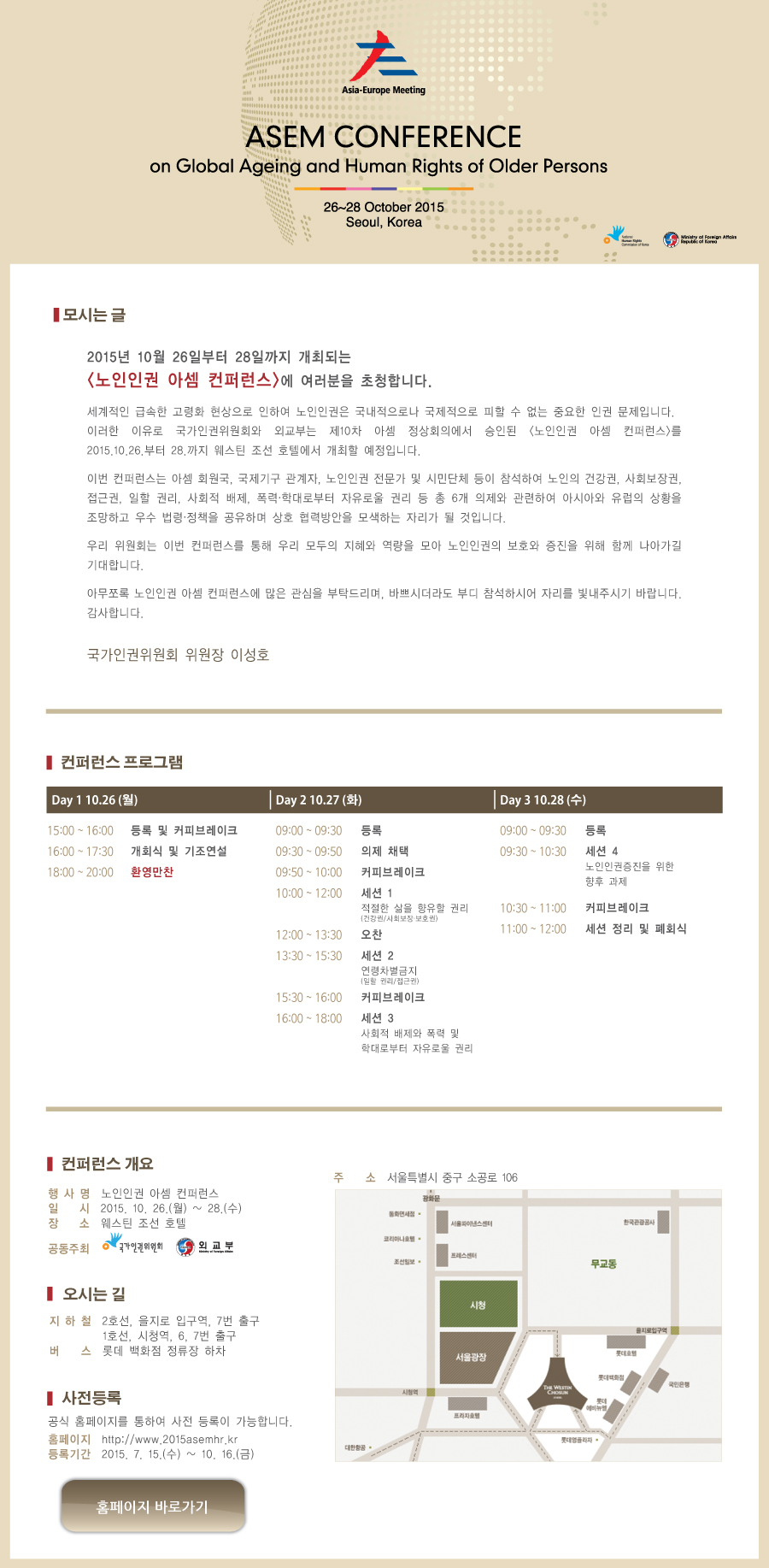 ''노인인권 아셈 컨퍼런스'' 개최를 알려드립니다.