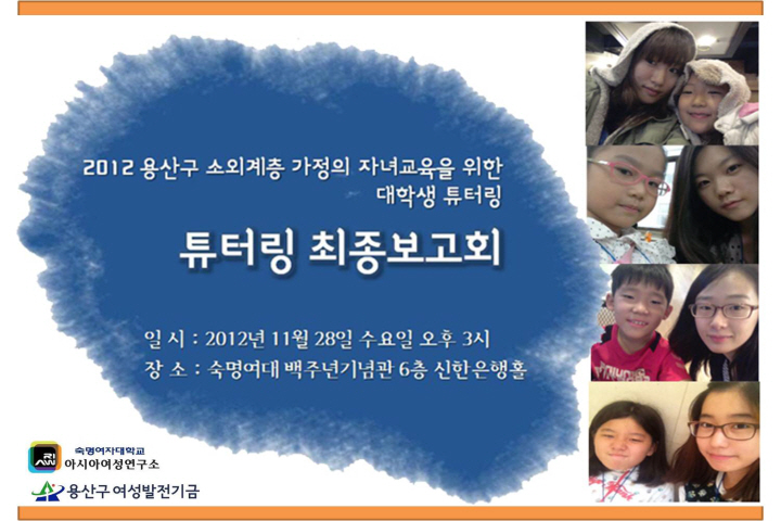 2012 용산구 여성발전기금 튜터링 3기 최종보고회 안내