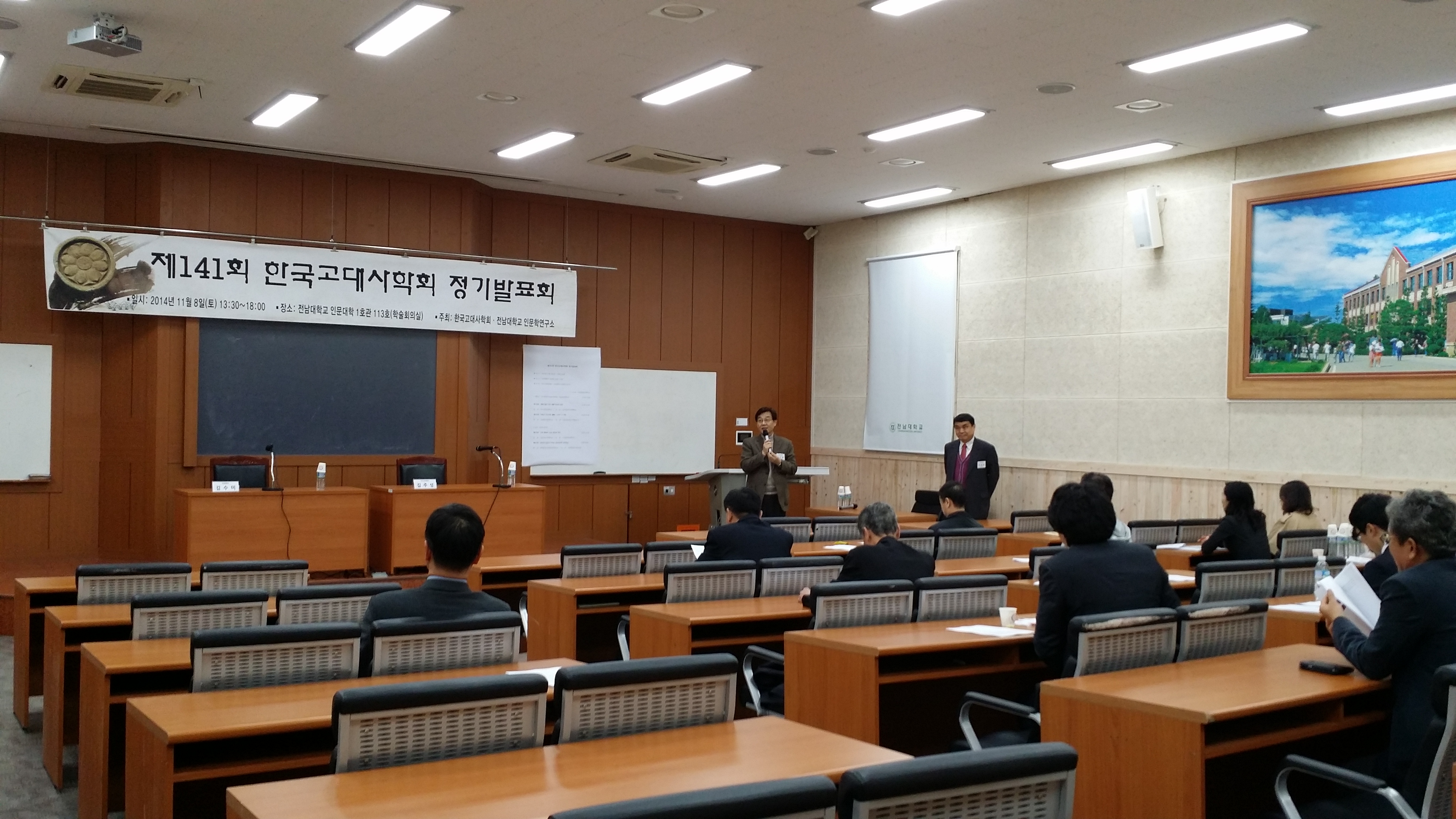 지난 11월 8일 광주 전남대학교에서 개최된 제141회 정기발표회장에서 임기환회장님의 개회사 모습입니다.