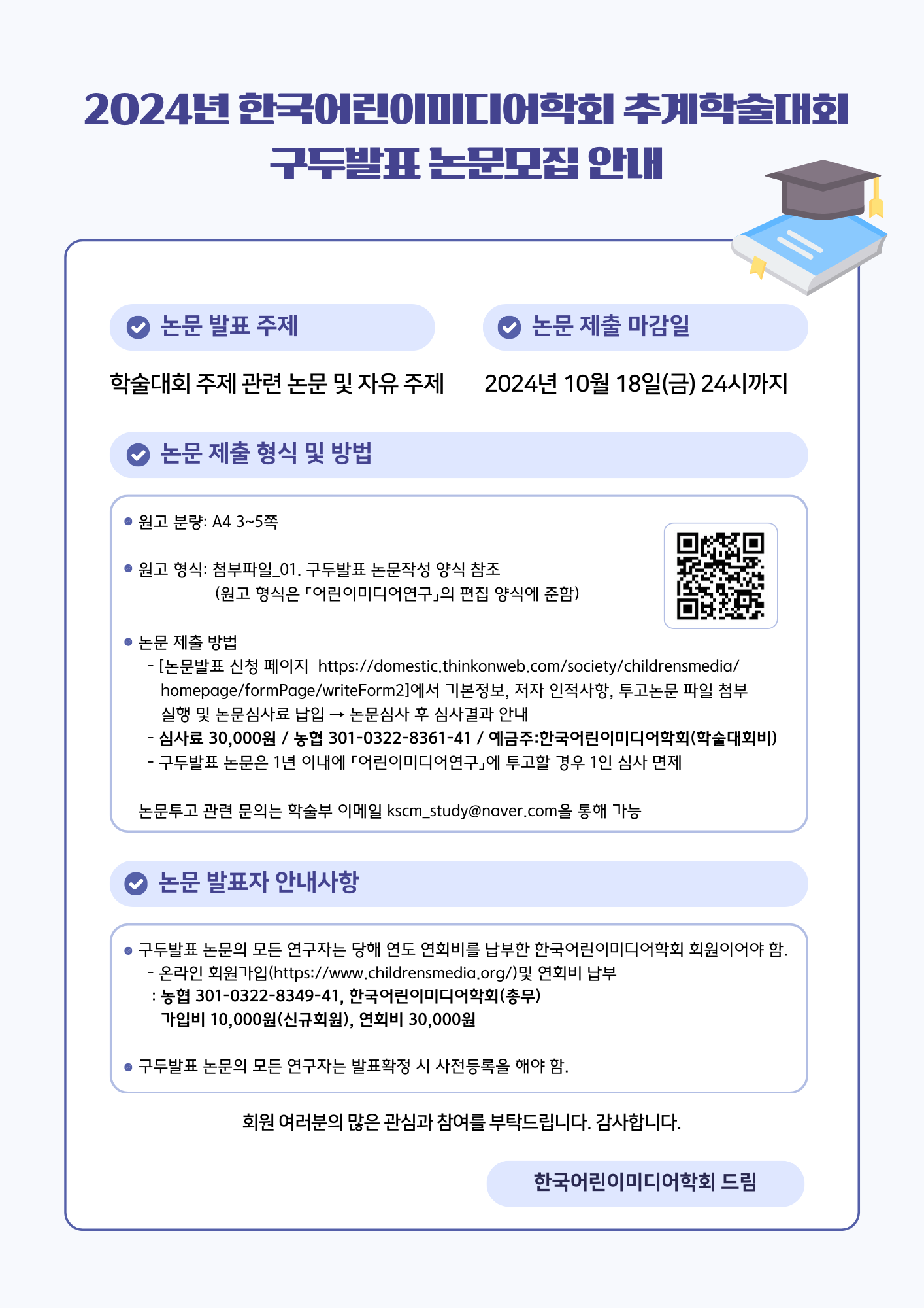 [한국어린이미디어학회] 2024년 추계학술대회 사전등록 및 구두발표 논문모집 안내