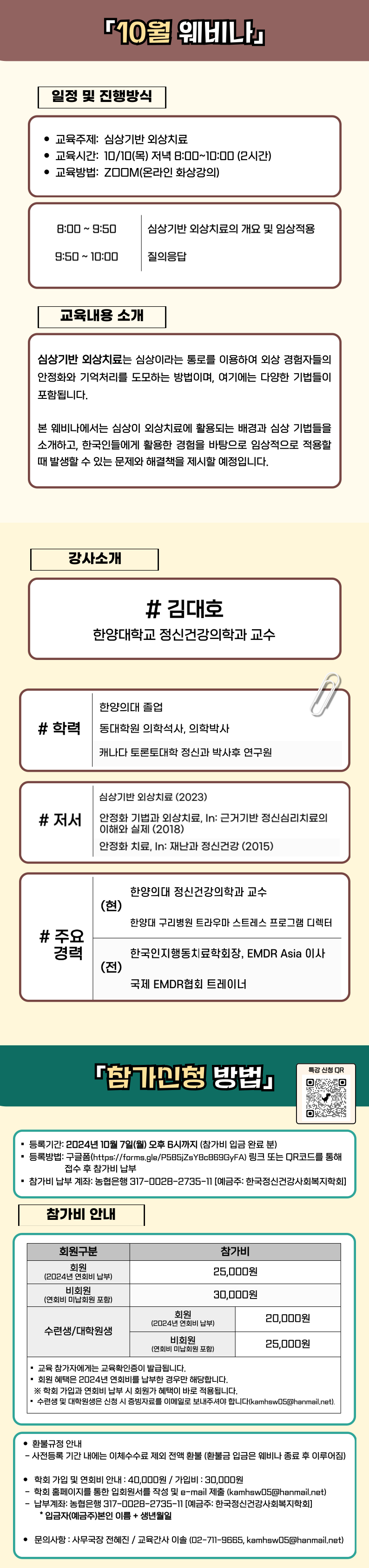 [한국정신건강사회복지학회]「트라우마 심리치료 기억처리단계에서의 근거기반 치료 개입의 실제 - 심상기반 외상치료」10월 웨비나 안내