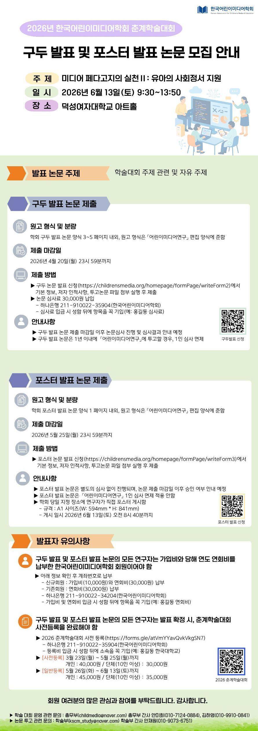 - ▶ 포스터발표(3/23~5/25): https://childrensmedia.org/homepage/formPage/writeForm3