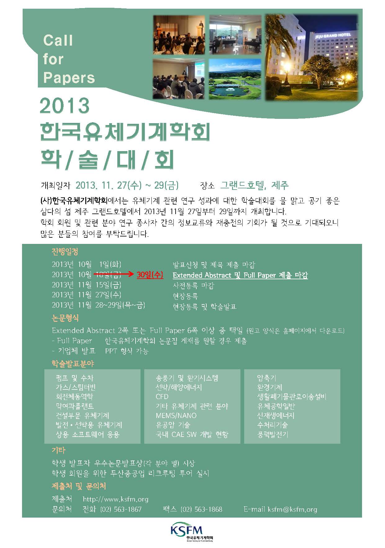 2013 한국유체기계학회 학술대회 사전등록, 숙박 및 항공권 예약 안내