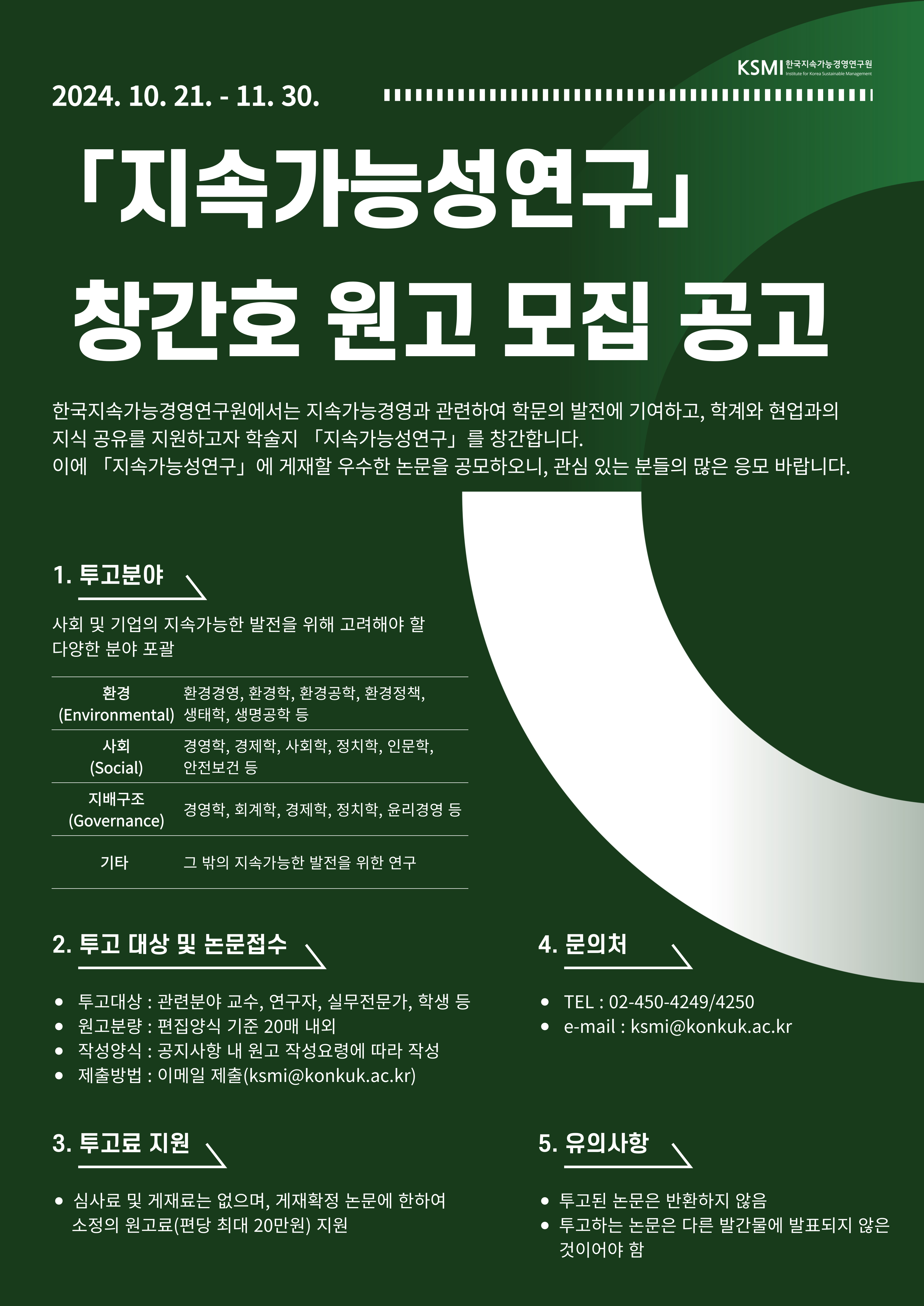 이에 지속가능경영과 관련하여 학문의 발전에 기여하고, 학계와 현업과의 지식 공유를 지원하고자 학술지 「지속가능성연구」