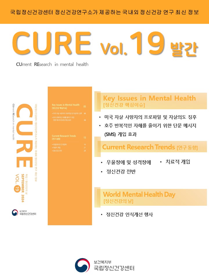 [국립정신건강센터] CURE(CUrrent REsearch in mental health) Vol.19 발간