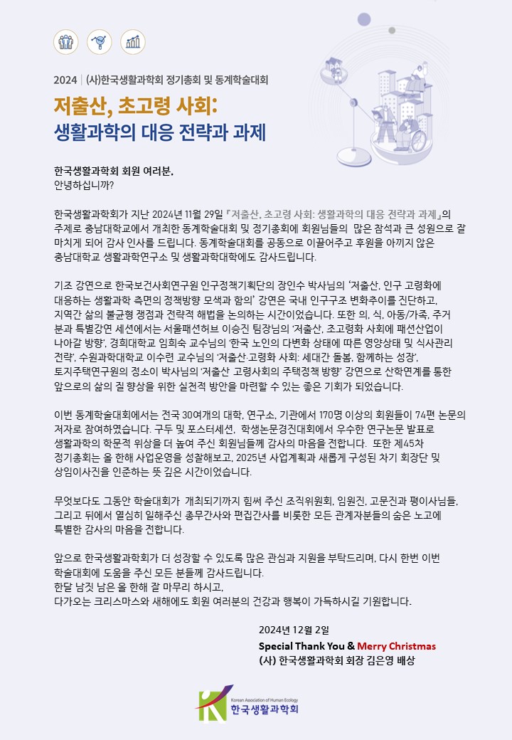 [한국생활과학회] 2024 (사) 한국생활과학회 정기총회 및 동계학술대회 성료감사인사