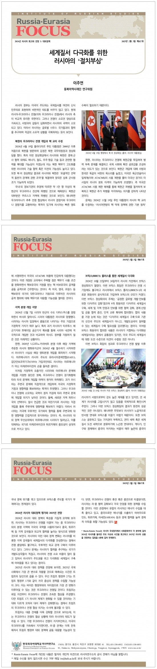 제827호 세계질서 다극화를 위한 러시아의 ‘절치부심’